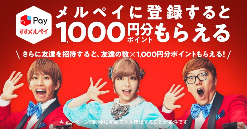 さらに初めてメルペイの「本人確認」をすると1000ポイント付与されるキャンペーンも実施中。