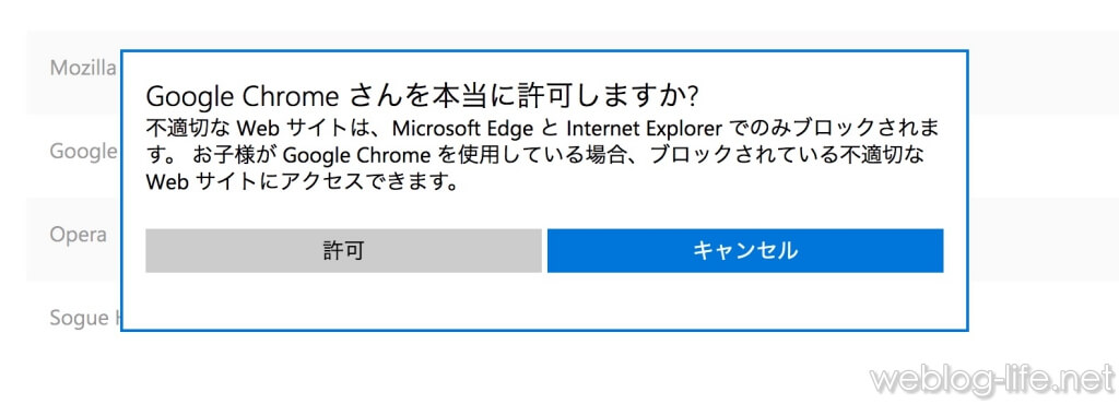 意外とブロックするWebサイトを探すのは大変なので、許可したサイトだけを見せるというのも有効です。(やや制限がきついですが・・・)
