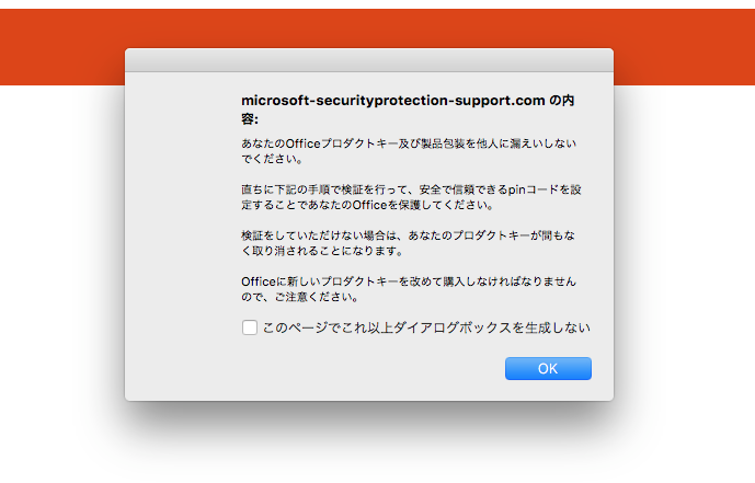 『ご注意!!OFFICEのプロダクトキーが不正コピーされています。』という件名のメールが届くとお問合せをいただいております。